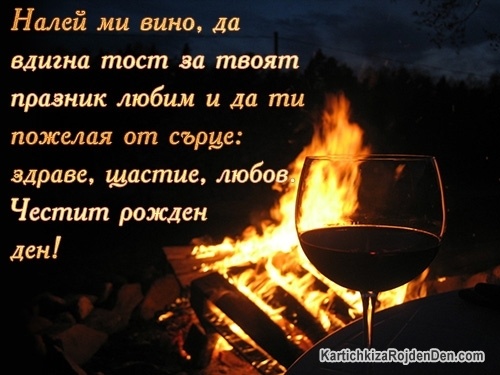 Налей ми вино, да вдигна тост за твоят празник любим и да ти пожелая от сърце: здраве, щастие, любов. Честит рожден ден!